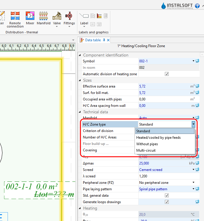 Те се активират, като кликнете върху етикета на елемент Отоплителна/Охладителна зона ако е:- била вмъкната в помещение като полигон,